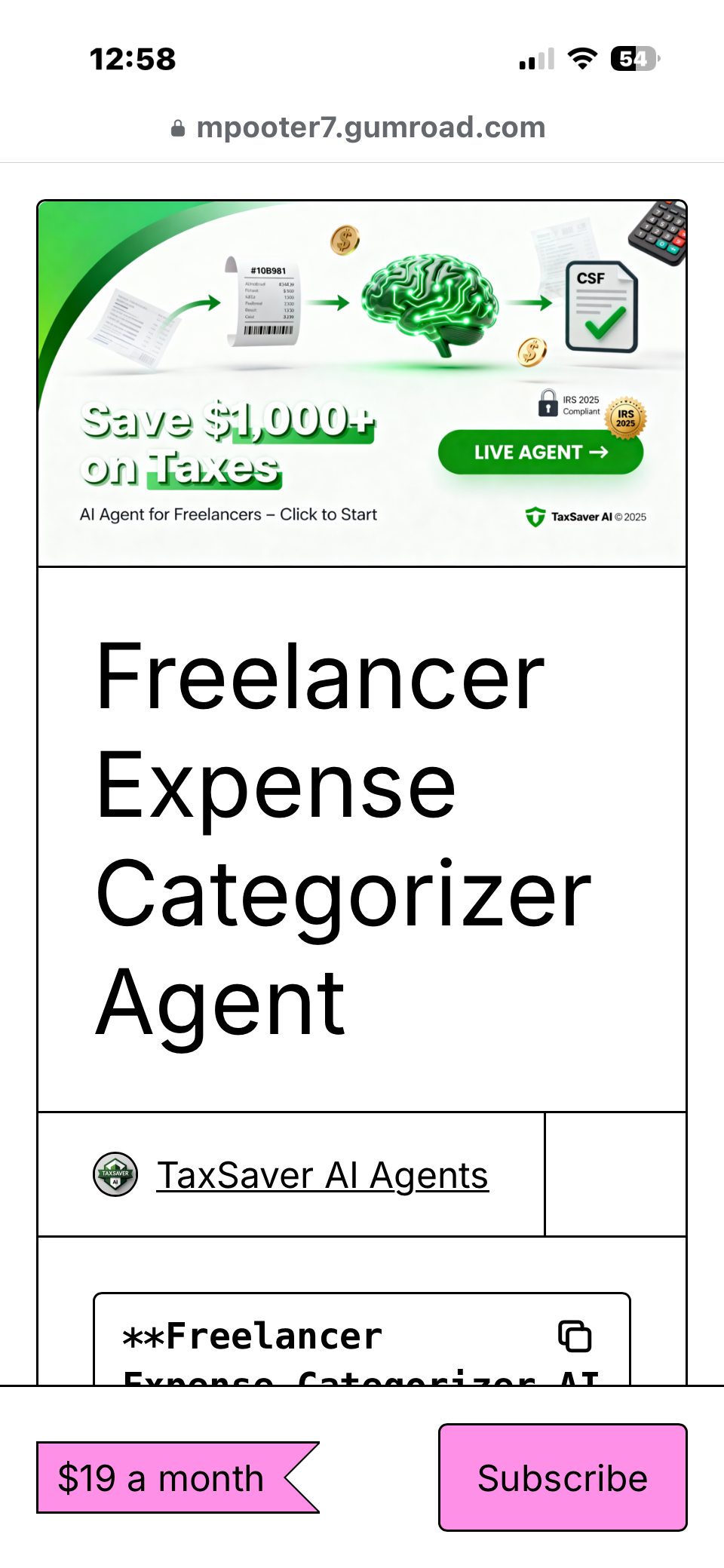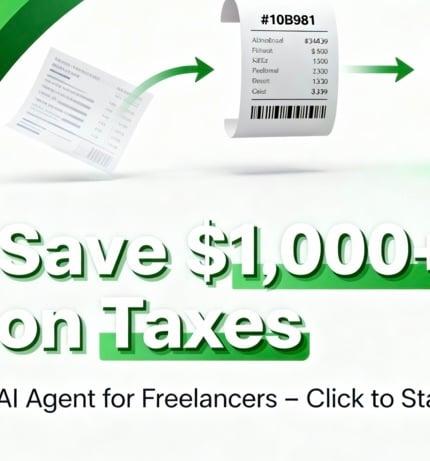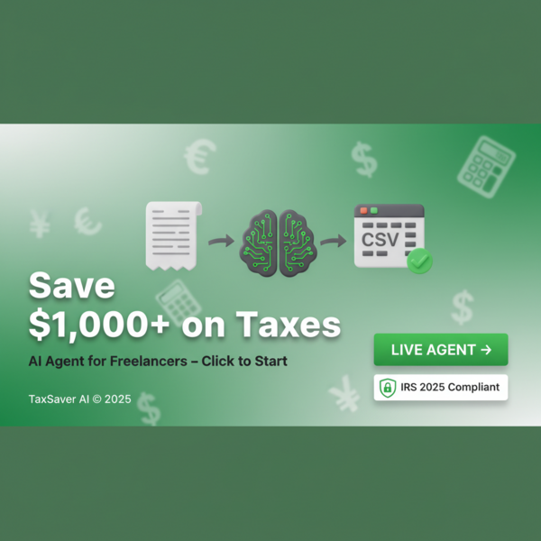 AI-powered no-code agents for freelancers to automate expense tracking, tax deductions, tax returns and financial wins. Built by a 20+ year finance expert. Save $1,000+ on taxes in 30 days—no spreadsheets needed." (Keyword-optimized: "freelancer expense tracker AI," "tax deduction automation.") Start Now